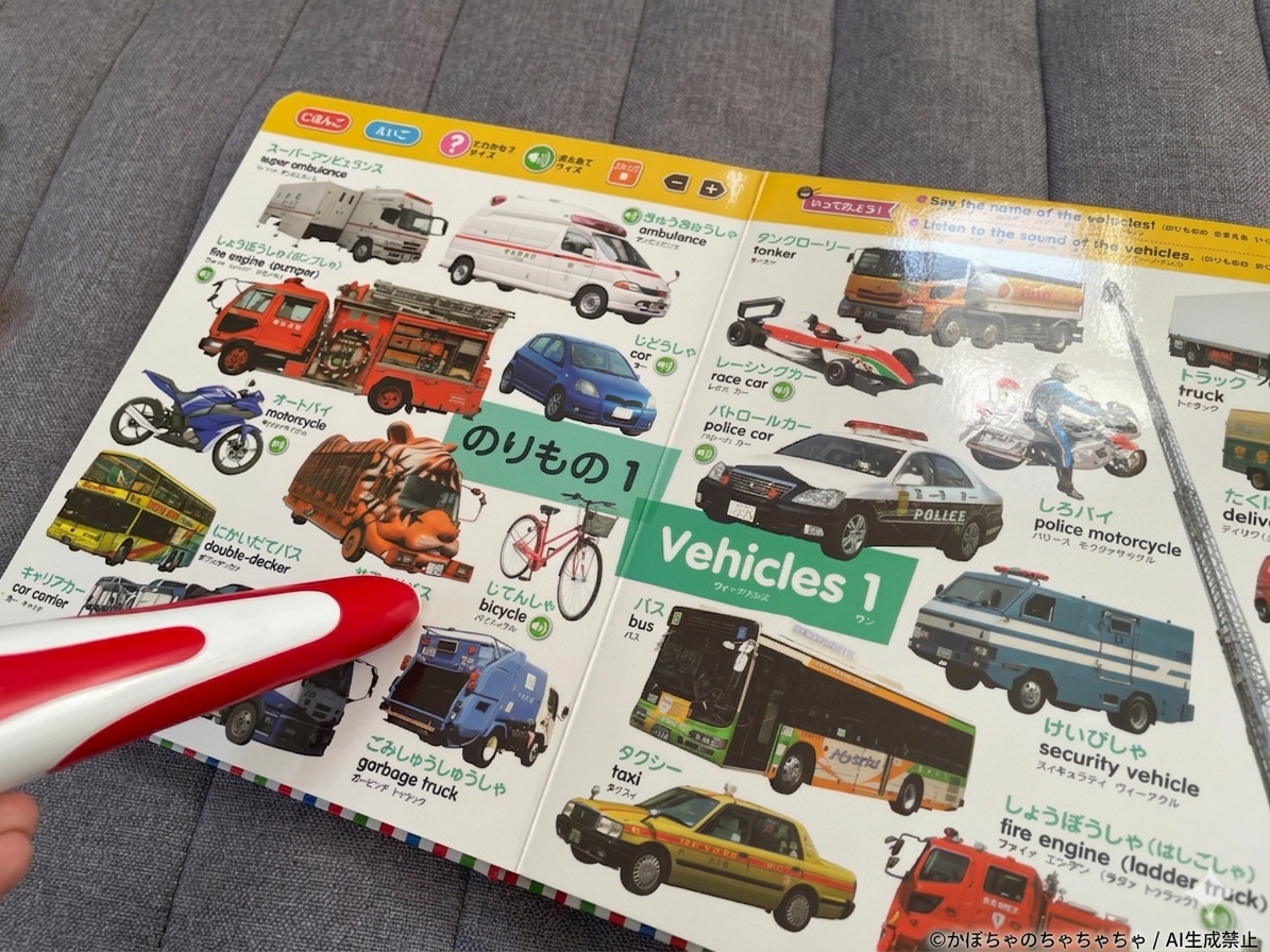 以前は「のりもの・たべもの」ページ一択でしたが、最近は他のページも開くようになりました。